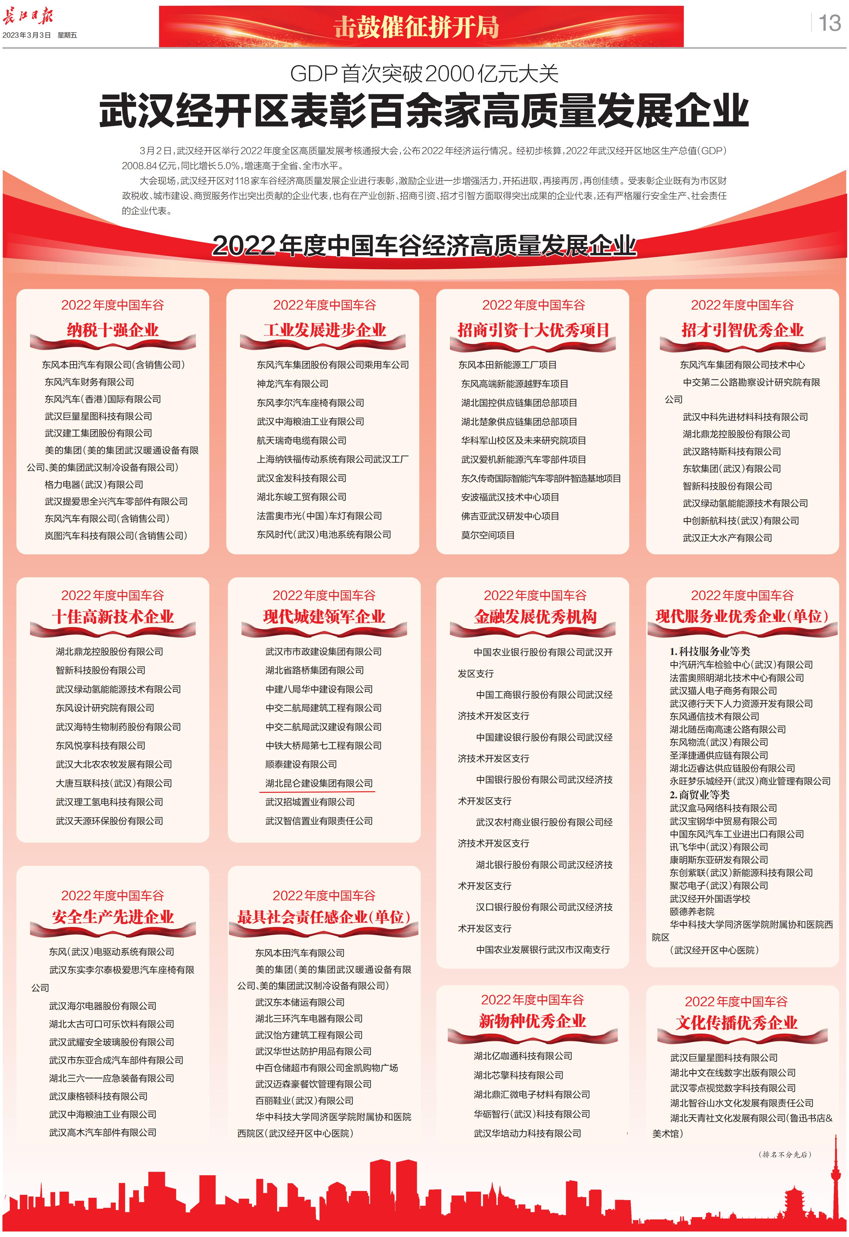 2022年昆侖集團榮登武漢經開區高質量發展企業(...